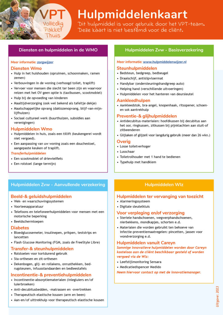 VPT Hulpmiddelenkaart, 1 pagina, formaat A4.
